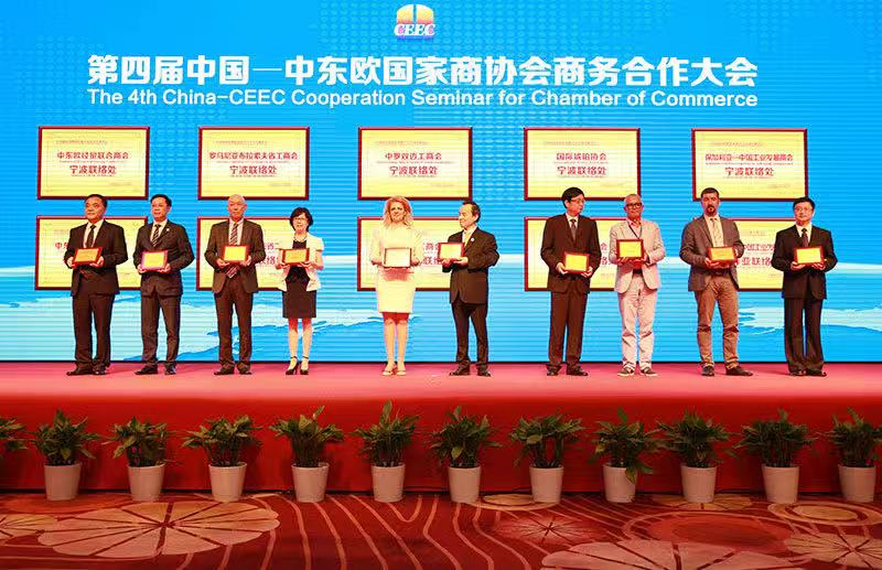 第四届中国-中东欧国家商协会商务合作大会在宁波举行。此次商务合作大会由宁波市政府主办,中国国际贸易促进委员会宁波市委员会、中国国际商会宁波商会承办。参加会议的有国外政府官员、商协会及企业家代表,国内50家贸促机构负责人,计400余人。会议通过了“推进商协会国际合作服务‘一带一路’建设”倡议书,举行了互设联络处授牌仪式,宁波市贸促会与保加利亚—中国工业发展商会、波兰国际琥珀行业协会、罗马尼亚布拉索夫工商会、中东欧经贸联合商会、中罗双边工商会等互设联络处。随后,参加会议的中外商协会及企业进行对接洽谈,现场达成270余项合作成果。